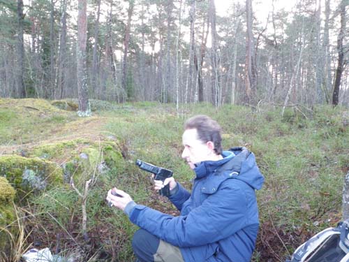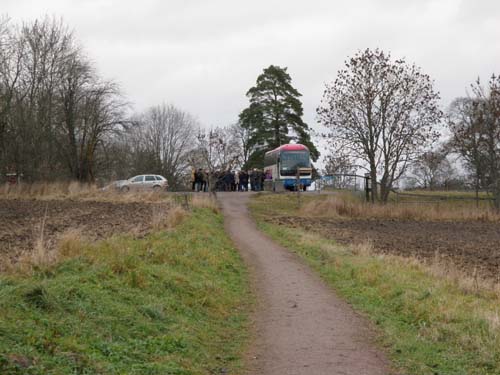 När jag anlände till högen stod en busslast, ja en busslast, med mugglare på platsen. Lyckligtvis leddes de bort mot högen av guiden så jag kunde få min logg. Jag fortsatte sedan mot en närbelägen burk vid en mycket liten stuga innan jag återvände mot högen för nästa Håga cache. Då var mugglarna nästan klara och återvände till sin buss, därmed kunde jag ostört leta igenom en enbuske!