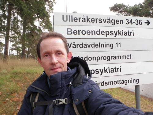Det första caching-området som skulle plockas förde mig in till en plats med kliniker som bland annat utlovade botemedel mot beroende. Tur då att jag inte har några sådana störningar utan är en fullt normal geocachare. Burken som låg närmas beroendekliniken var riktigt klurig, men då jag sett liknande tidigare gick det att finna en lösning. En vardag med mycket trafik lär det vara mycket svårare att plocka den dock!