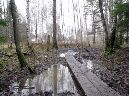 Mitt på Gula stigen ansåg jag att den borde byta namn till Geggiga stigen, det var rikligt med lera och vatten! Det sänkte gånghastigheten ganska ordentligt, men inget lyckades hindra min framfart och ingen burk missades i serien. Däremot hoppade jag över en riktigt svår cache då jag ville utnyttja dagsljuset så långt som möjligt till trailens cacher.