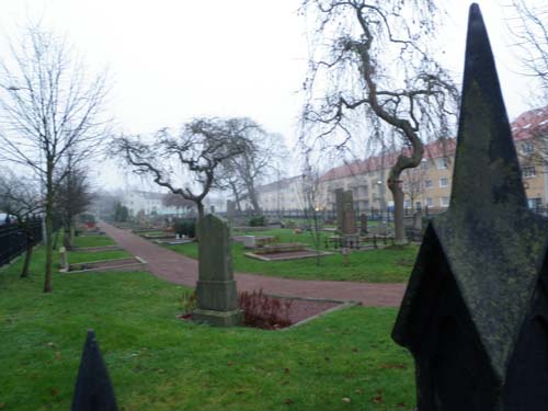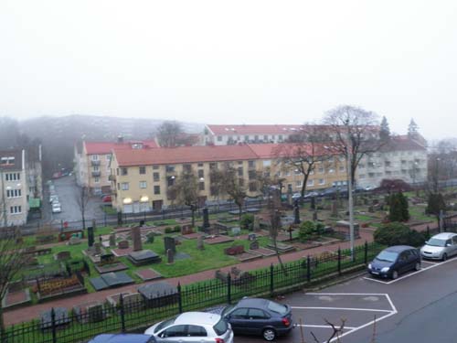 Jag fortsatt nu upp mot en cache graderad som en terräng 3:a. Den innebar mycket riktigt en del bergsskuttande och staketövervinnande, men det gick ändå lätt att nå fram till ”Bangatan”, därifrån fick jag åter en fin vy ut över Djurgårdskyrkogården eller Amiralitetskyrkogården som den också kallas.