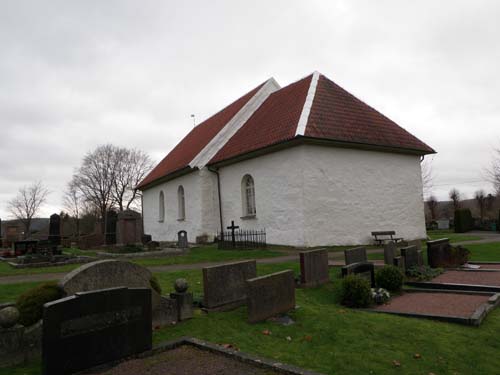 Min plan var sedan att plocka cachen ”Bergums kyrka” men jag fick problem! Cachen ligger omedelbart intill ett dagis och där fanns en hord med skrikande småmugglare, två meter från cachen! Det var inte läge att försöka logga så jag gick vidare mot ”Little birds nest”. Där var allt lugnt och stilla så jag fick min logg. Själva loggremsan var dock så blöt att det knappt gick att skriva i den. När jag gick tillbaka i riktning mot kyrkan kunde jag konstatera att småmugglarna var kvar och hade fått förstärkning av två bistra fröknar som stirrade länge på mig, alltså bara att sucka och ge upp burken.