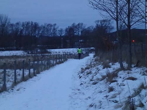 Ett kort stycke bortanför Tuve kyrka nådde jag dagens första mål ”#30 mellandagsburkar 2012”. Den var snyggt utformad men då jag sett den varianten förr många gånger så hittade jag cachen utan problem. Från mellandagarna reste jag ytterligare bakåt i tiden och hamnade snart i början av julkalender ”#3 Hisingens julkalender 2012”. Först gick jag förbi burken, sedan vände jag mig och och fick då syn på den. När locket skruvats av återstod att få ut loggremsan vilket visade sig lite knepigt i kylan. Just när jag skulle dra fram mitt multitool får jag se att en parkeringsvakts-want-to-be-mugglare närmade sig, så jag fick vänta en stund innan jobbet kunde slutföras.