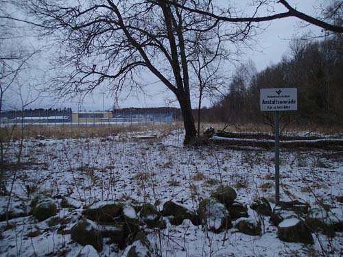 Istället gick jag mot en synnerligen fängslande cache. För att komma dit fick jag gå över den kameraövervakade parkeringen vid anstalten men på väg dit fanns inga skyltar som angav att man inte fick gå där! Sedan var det möjligt att följa en liten stig fram till cachen endast ett kort stycke från taggtråden! Burken hittades lätt på en synnerligen välbevakad plats. En hög stolpe med tillhörande kamera var riktad rakt mot cachen så jag misstänker att jag syntes på någon monitor inne på fängelset!