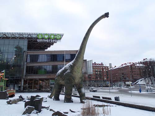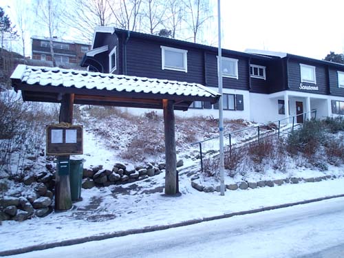 Nöjd med två loggar denna dag började jag vandringen mot cachingbasen. Det började falla lite snöflingor och var omkring fem minusgrader så det var verklig vinterkänsla. Lite oväntat då att träffa på en stor skräcködla vid Korsvägen.