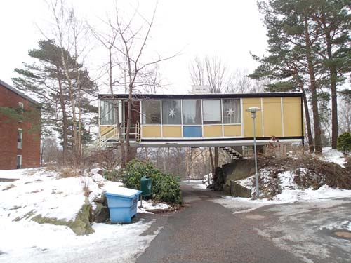 När jag tagit mig ned från höjden igen stod jag snart framför cachen ”Kortedala Brandstation”, jag inledde sökandet när jag hörde – HALLÅ DÄR – från ett av brandstationens fönster!! Jag var upptäckt, skulle brandmännen sätt eld på mig nu? Borde jag inte ha tagit lågskor…? Men fruktan som först fyllde Hallén vändes snart till glädje då alla tre innanför fönstret visade sig vara geocachare, varav en var Hugoz, ägaren till burken jag letade efter. Vi fick en riktigt trevlig pratstund, kul att träffas!