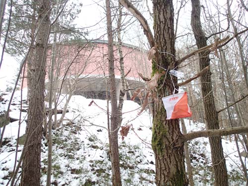 Även nästa burk ”Isdala” var enkel, men blev lite svårare genom ett enormt mugglarflöde förbi stolpen där micron har sitt hem. Efter nästan tio minuter var loggningen avklarad och jag kunde åter sätta fart på kängorna och gå mot ”Alfred” som låg i en liten skogsdunge, den hade nyligen fått besök så det var bara att följa fotstegen i snön mot cachen, ibland är det där vita ganska bra! Efter framgångsrik loggning gick jag upp mot ”Kortedalas vattentorn”, åter en plats jag inte tidigare besökt i området. Först trodde jag inte att det var cachen, men det var det ju! Som det sagts i en tidigare logg, en bra föreningen mellan gammalt och nytt.