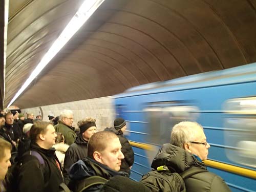 Slutligen var bussturen över och vi anlände till hotellet, snabbt in med packningen för att hinna till återsamlingen i lobbyn. Vi skulle nu bege oss till vårt event. När den stora gruppen gick ned för backen från hotellet och styrde stegen mot tunnelbanan låg ännu en burk framför oss och denna gång fanns det verkligen en burk, vår första i Ukraina blev ”The Party’s Over (Kyiv Metro Series)”.