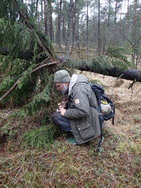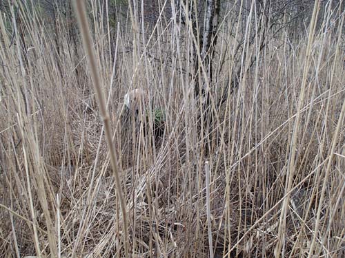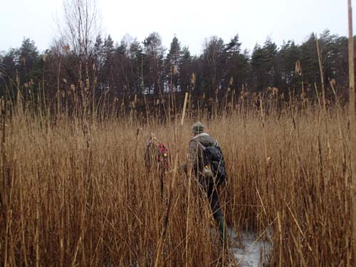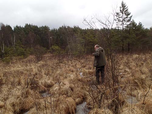Ganska snart hade vi lämnat allt vad stigar heter och tagit oss ut i de ännu frusna våtmarkerna. Turen i den isiga vassen var kul, men det gällde givetvis att se upp var man satte fötterna.