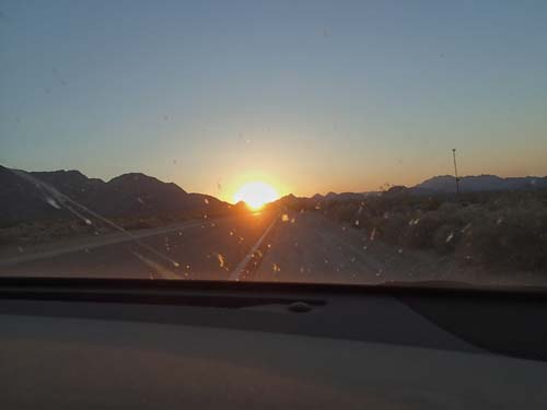Många hundra burkar senare körde vi mot solnedgången och en kort natts vila innan en ny dag med hård burkjakt skulle inledas. Trots den oväntade omvägen under dagens caching lyckades vi för andra dagen överträffa våra mål rejält, vi låg nu många hundra burkar plus, nöjda kunde vi avrunda dagens jakt och överlämna öknen åt traktens skorpioner.
