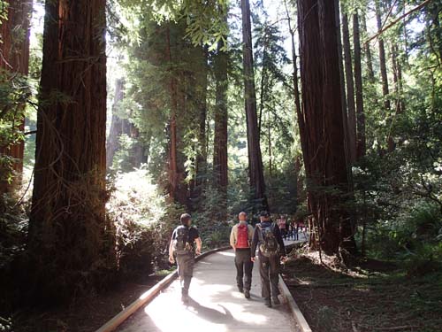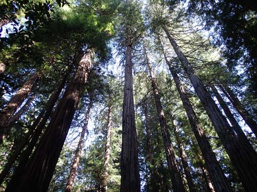 Från denna punkt blev det en nästan oavbruten nedförsbacke ned mot Stillahavskusten. Vårt mål var att först göra ett lite längre stopp vid en av redwoodskogarna norr om San Francisco och därefter ta oss mot vårt motell.