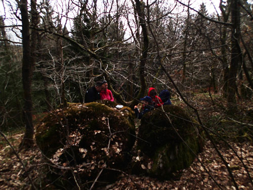 Därefter tog jag mig ned från bergssidan och gick bort mot ”Timmerslättskogen”. Den beskrivs som en lämplig gömma för nybörjare, men inget hindrar att Hallén loggar även en sådan! Det gick lekande lätt att hitta burken.