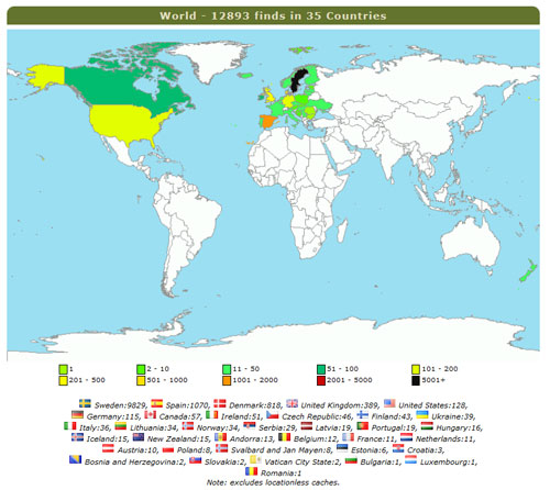 Något jag inte trodde var möjligt när kartans färgskala skapades har inträffat, ytterligare ett land har färgats svart, alltså över 5 000 hittade burkar!