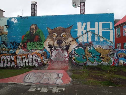 Efter detta sammanträffande med andra burkjägare fortsatte jag mot ”Taking a walk” som inledningsvis bjöd på lite motstånd, men efter att jag vidgat mitt jaktområde kunde även denna loggbok signeras. En bit bort fångades även ”Klambratún Volleyball” innan jag vände tillbaka in mot centrum igen. Den sista burken under denna runda loggades i en något otypisk miljö för denna stad, en plats fylld med graffiti. ”flunkyball stadium” har en omgivning som säkert kan kallas intressant men inte vad jag kallar vacker!