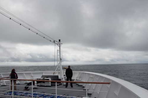 Ute på öppet hav mellan Island och Grönland – Danmarksundet – började det att gunga lite mer än vad det gjort i hamnen (kanske inte så konstigt), men det var inte någon direkt dramatik. Kaptenen ansåg att vädret alltid är bra, men det fanns andra i besättningen som rådde till att ta sjösjukepiller. Jag ville vill ogärna ta piller om jag kan slippa så jag struntade i det rådet och lyssnade istället på kaptenen.