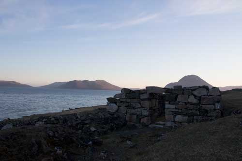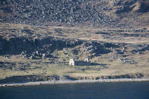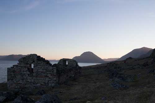 Nära stranden i skuggan av det stora berget ligger en mycket välbevarad kyrka. Byggnaden är från 1300-talet men platsen koloniserades redan under slutet av 900-talet. Kring kyrkan ligger imponerande lämningar av en stormansgård, något liknande kan man inte se på andra platser i norden – det var verkligen som att kliva in i det förflutna, då går Hallén som i ett lyckorus!! Den sista skriftliga uppgiften från denna plats är från 1408, därefter försvann invånarna. Exakt vad som hänt med befolkningen diskuteras intensivt. Var det klimatförändringar? Var det en farsot? Var det krig? Eller kanske en kombination av många påfrestningar som tillslut knäckte invånarna på denna utsatta plats vid världens ände.