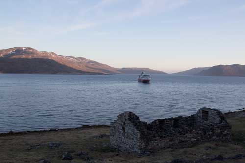 Denna fina kväll kunde man stanna kvar länge ute på däck och njuta av landskapet, men detta besök vid Hvalsø kommer jag att räkna som en av resans verkligt stora upplevelser.