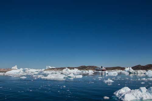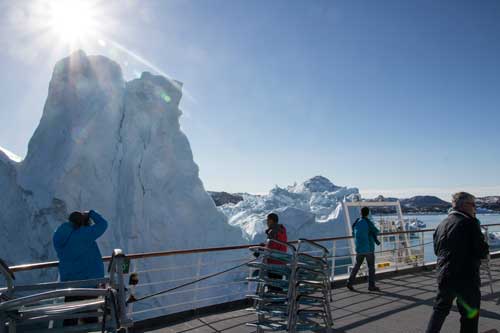 Omkring klockan nio på förmiddagen nådde MS Fram fram till Ilulissat efter en otroligt vacker tur förbi oräkneliga isberg. Detta skulle bli resans nordligaste punkt, 69° N. Från bryggan slog man på stora ”väckarklockan” tidigare under förmiddagen för att ingen skulle missa den osannolikt vackra utsikten.