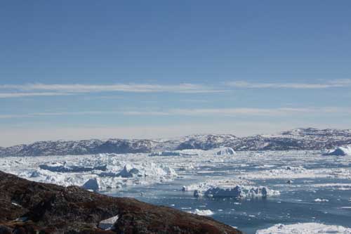 Utsikten över den jättelika isfjorden är imponerande och det var intressant att se den även från landsidan.