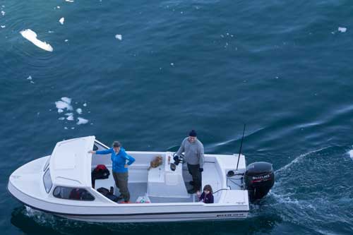 Jag hade anmält mig till en tur med liten båt ut bland isbergen. Det var lokalbefolkningen som ordnade utflykten med mindre fiskefartyg som bemannades av folk med god kännedom om isförhållandena.