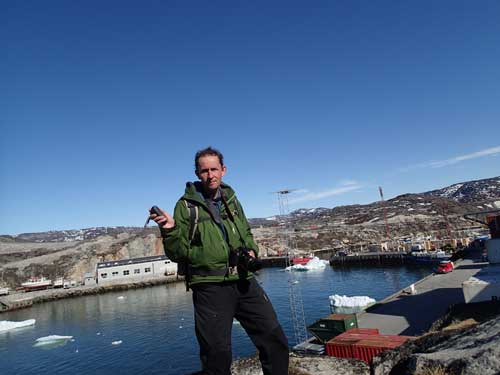 Efter att ha njutit av utsikten började jag gå tillbaka in mot ”centrum”, det fanns trots allt ytterligare en burk som låg och väntade på besök – ”Ilulissat havn”. På små gator och via några trappor nådde jag fram till området och kunde snart rota fram cachen och få min tredje logg denna dag – här talar vi om Grönländsk mängdcaching!