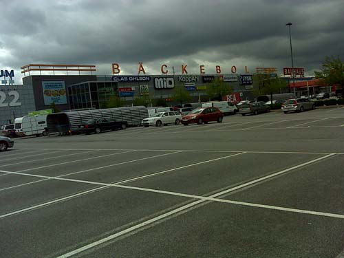 Idag skulle jag främst ägna mig åt mugglaraktiviteter i form av besök på det stora möbelvaruhuset, men i närheten låg det några nya burkar så jag var givetvis tvungen att inleda förmiddagen med lite jakt. Några få Hallénkliv från bussen låg ”Bäckebol köpcenter”, tidigare fanns en burk närmare butikerna som jag aldrig lyckades hitta. Denna nya version av cachen gick dock mycket lättare. När jag stod och loggade fick jag se en familj med en gps-försedd pappa i spetsen som närmade sig. Det visade sig vara burkletare från Nederländerna som nu fick loggat sin första cache i Sverige – det var bara att gratulera och önska fortsatt god jakt!