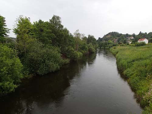 När det var loggat och klart gick vandringen i riktning mot Kyrktorget i Partille och vidare mot Säveåns strand. Där tänkte jag se om det var möjligt att logga ”Promenad längst ån”, platsen är känd för sina många mugglar-A-lagare, men det var ju ändå 8.30 på en söndag och dessutom hade det börjat att falla ett lätt regne, kanske är det fritt fram? Men ack vad jag bedrog mig, det satt en ensam mugglar-A-lagare och drack frukost på bänken invid cachen, helt hopplöst att ens göra ett försök så jag drog vidare på min tur.