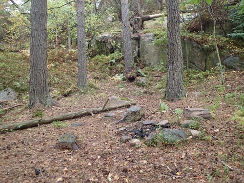 Mitt mål var nu ”Västra skogen”, en helt vanlig micro-burk under en rot i skogen. Det tog en liten stund att hitta rätt rot, men när jag hittade platsen för lägerelden som cachebeskrivningen talar om förstod jag att det var rätt även om min gps inte höll med om den saken!