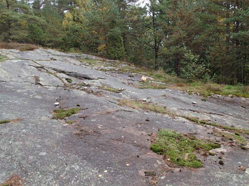 Det var ytterligare en micro i skogen som krävde lite letande innan jag såg det hinten talade om. Nu var denna del av skogen rensad på burk så jag började söka mig ned från berget på de välanvända stigarna. Tyvärr verkar det vara en hel del personer som gillar att skräpa ned i markerna, sällan har jag sett så mycket ölburkar utspridda som på en av berghällarna nära Avdelningsplatsen.
