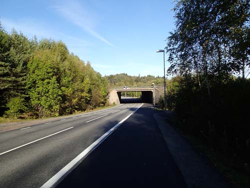 Ett kort stycke längre fram går vägen under motorvägen, där hittas #9 i serien. Där ser man idag inte några spår från äldre tider, men på platsen låg tidigare Bratteklev: