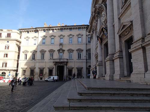 Inne i byggnaden, rakt fram i bild vid den vita skåpbilen, fick man gå uppför en enorm trappa och där stod en beväpnad vakt och släppte in oss! Huset tillhör den Italienska bankorganisationen, vem vet vilka hemligheter som dolde sig längre in i huset med tanke på hur välbevakad lokalen var!