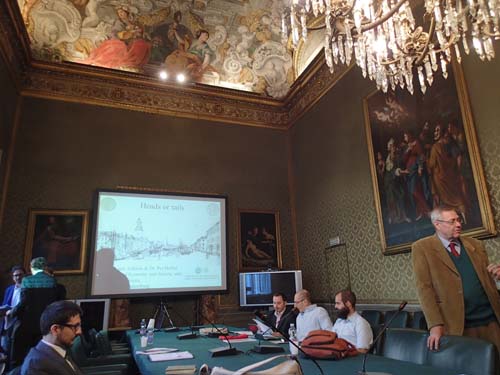 Det var nog den mest imponerande lokal jag varit i för en workshop, inte bara en historisk miljö den hade dessutom alla tänkbar teknisk utrustning. Dock hade det behövts tolkar för föredragen på italiensk/spansk/franska… När vi avslutat för dagen fanns det inte tid och ork för burkjakt, det blev en sen middag och därefter återfärd mot hotellet.