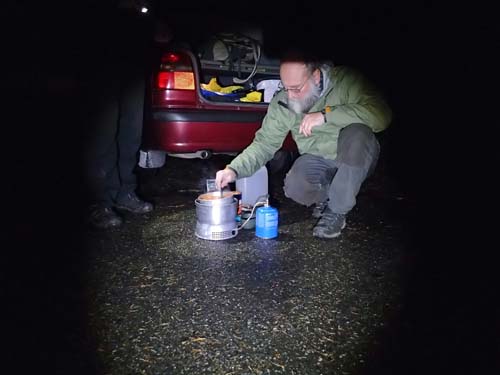 Efter ytterligare lite burkjakt norr om Ålborg var det dags för lite burkmat i ficklampans sken.