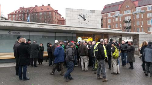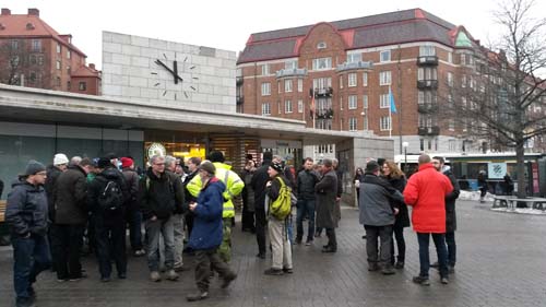 Jag gick iväg på tidig lunch från arbetet denna dag och prövade min nya telefons möjligheter under min lilla promenad till Korsvägen (s.k. vänsterprasslande enligt hebb). När jag korsat alla filer och spår utan att bli nedmejad nådde jag den första folksamlingen, vi höll ett litet förevent innan vi gick dryga 30 meter och träffade på än ännu större grupp – eventet kunde börja och bgr01 skickade runt loggboken. Sedan blev det mer än de utsatta 15 minuterna av geo-snack med gamla bekanta och nya deltagare så som det skall vara på ett bra event. Enkelt men mycket trevligt!