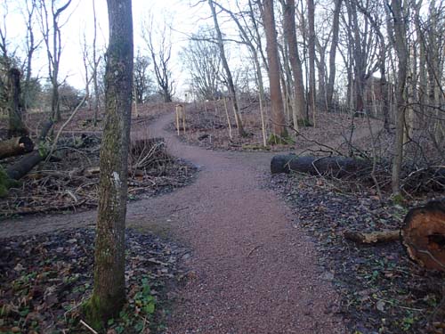 Med raska kliv fortsatte jag nu mot Botaniska trädgården för att leta upp ”Stigar som mötas, eller skiljas 4.” Där fick jag leta lite innan rätt plats hittades, men det var inte några stora problem. Nu fick jag en liten skogspromenad ut ur området och sedan högsta Hallénfart genom bostadsområdena bort mot förorten Haga.