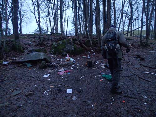 07:30 var det samling i Lerum för Team Ingabo, Hallén och TMR68 denna lördagsförmiddag. Vi hade alla tänkt att gå på Vintereventet men först var det givetvis lite uppvärmning men några loggar. Det dröjde inte många minuter innan första burken för dagen ”Hunden Buster” fångades in. Därefter fortsatte vi upp mot skogen och gav oss ut i terrängen kring soptippen. ”NOT A WALK IN THE PARK #3 – Provet” inledde promenaden. Det var ganska skräpiga omgivningar, mycket som lämnat soptippen men även kablar och datorer som folk slängt ute i skogen!