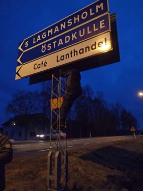 Vi gav oss nordöst om Alingsås och till serien ”Road to Östadkulle” där alla utom den första burken i serien hittades. Det var mest burkar i räcken och skyltar, några låg lite högre än andra…
