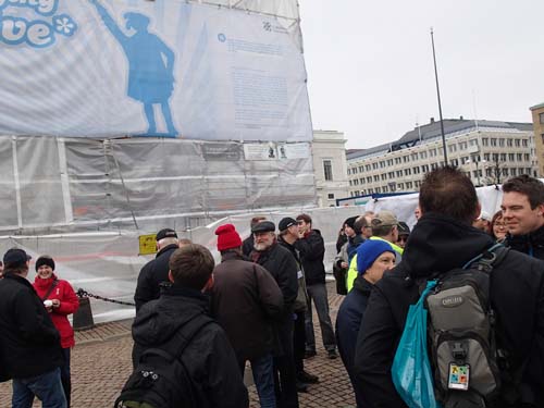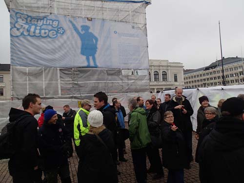 Mitt på torget var det redan en ganska stor skara som stod och pratade om plastburkar, det kunde bara betyda en sak, jag hade anlänt till eventet ”Hej våren!”.