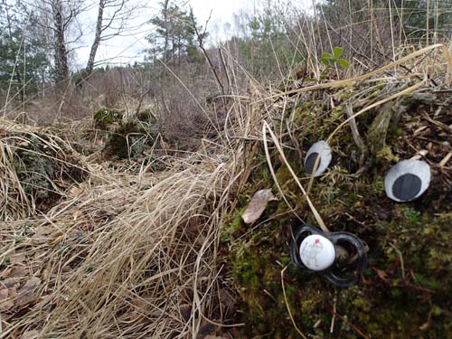 Strax efter halv tio denna lördagsförmiddag lämnade jag min cachingbas för att gå upp i Delsjöskogen för att förbereda inför eventet ”Trolltyg i Geoskogen – ett event med maskerad”. På väg mot eventplatsen placerade jag ut PET rör innehållande frågor till eventets poängpromenad. Alla 13 rör placerades ut och därefter förberedes även eventplatsen.