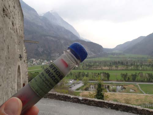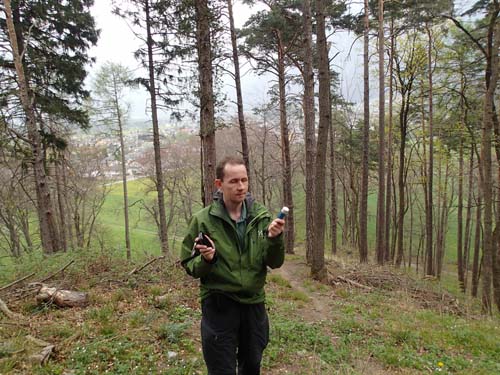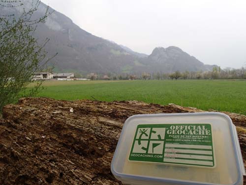 Detta fick givetvis firas med lite medhavd mat innan turen gick vidare ned från berget och vidare mot ”Fröschaloch”. Ner i byn Balzers låg det fina, och säkert mycket dyra, hus sida vid sida. Där fanns också många äldre byggnader och nära en liten kyrka hittades burken ”Pföhrassler”, men det krävde åter urbana cachingtekniker då det var gott om mugglare i närområdet. Men efter en iskall insats så var burken funnen och loggad.
