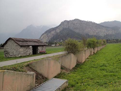 Förbi kor, tjurar och åsnor gick jag genom denna pastorala idyll för att logga ”Sargans PET #3” som låg inne i ett märkligt litet hus invid något som såg ut som en försvarslinje. Utmed dessa ”stridsvagnshinder” tog jag mig ett kort stycke bort till ”SumiFimiLomi_8” som var en välbekant cachegömma inborrad i en bit trä, snyggt men inget som lurade Hallén denna dag.