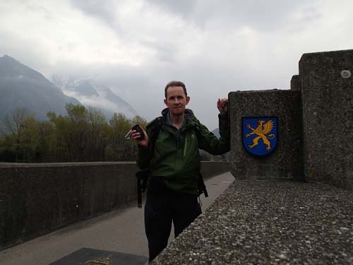 Efter ytterligare några kilometers rask vandring nådde jag fram till en gångbro som sträckte sig över hela floden och ledde in i miniatyrriket Liechtenstein.