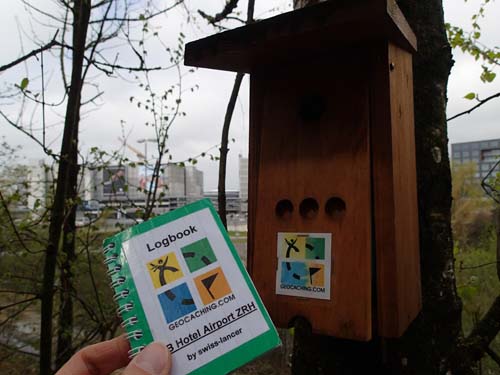 När jag närmade mig cachen ”Another Log At The Wall” visade det sig vara en rökande mugglare som patrullerade området, fram och tillbaka, gick han med bestämda steg för att tydligt markera sin avsikt att hindra min logg. Men jag hade nu hunnit lära mig att mugglarna i Zürich förr eller senare ger upp så jag väntade dryga tio minuter, sen var det fritt fram och jag kunde säkra min logg.