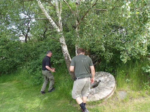 Givetvis kom vi också till platser som hade en rik historia. Vid cachen ”Trollhögen” finns det en hög där trollen en gång haft sin boning, sägs det. Högen är 25 meter i diameter och 3 meter hög. Det finns en berättelse om fru Anna Rosensparre, hustru till Anders Stigson Thott, som en dag gick upp på kullen för att speja efter sin man då hon försvann! Det är en mycket dramatisk historia som är för lång att återges på denna blogg, men om du är nyfiken rekommenderar jag att du går in via denna länk och läser ”I trollens våld” via Projekt Runeberg. Det slott som ligger intill Trollhögen heter Trollenäs, ett 1500-tals slott som byggts om till sitt nuvarande utseende under 1800-talet. Dess historia började givetvis inte på 1500-talet, platsen Näs som den hette före 1768, har varit bebyggd allt sedan 1368. Det var den danska ätten Thotts stamgods och den hade anlagts så på en plats där det gick att utnyttja Saxåns vatten som en naturlig vallgrav. Idag ägs slottet av familjen Trolle och är ett intressant exempel på hur man kan skapa en legend kring både hus och släkt! (Bedoire, B., Svenska slott och herrgårdar – En historisk reseguide. Stockholm 2006. s. 81) Slottet har givetvis också en egen hemsida.