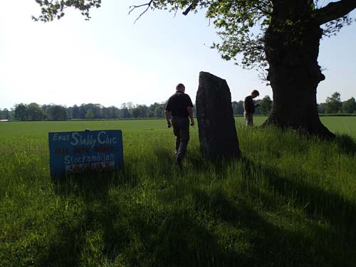 När vi närmade oss Höör stannade vi till vid cachen ”En Lysande Ek”, en burk som krävde stege, men det var egentligen inte det som jag var mest intresserad av, det var givetvis runstenen. Varken på platsen eller på cachesidan fanns någon information om runstenen, men då vänder jag mig istället till Riksantikvarieämbetets Fornsök.