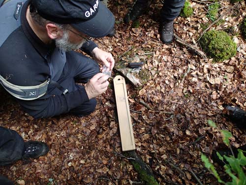 Efter noggranna instruktioner från JoY.se om att inte klättra över staket eller skrämma djuren i hagen så gav vi oss över avspärrningen, hämtade den lilla älsklingen och fick en karta och dokumentation över dagens nya burkar i vår hand. Snabbt formerades grupper, tillsammans med bgr01 och TMR68 anslöt jag till Ingabo, andma313, TLAJ och Paan och vi loggade gemensamt under förkortningen GoB (Göteborg och Borås). Till denna grupp anslöt även Pellefant77, penguin_153, OrjanC och carolus rex. Här följer nu en bildkavalkad från skogsvandringen som likt tidigare år hölls i ett gott tempo.
