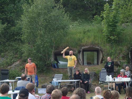 Före och under vår måltid kom det också en mängd framträdanden. Inte minst det dramatiska avslöjandet att Skånes gränser kommer att vidgas och i framtiden inkluderas Småland i Skåne – när geocachare Bumba klev fram för att mottaga stafettpinnen.