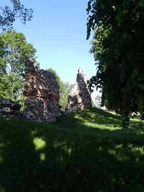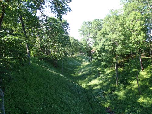 När vi sedan gick mot en cache i de äldre delarna av staden började jag nosa mig till att detta var en intressant plats. Gatunät och kvartersindelning vittnade om en plats av hög ålder. När vi passerade ortens kyrka gick vägen över en mycket djup vallgrav och bortanför den skymtade lämningar av torn och murar. Nu försvann burkarna ur mitt blickfång och all uppmärksamhet riktades mot landskapet omkring mig.