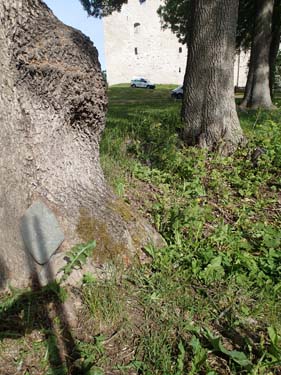 Vid halv tio på förmiddagen avgick bussen från Mariehamn och en halvtimma senare var vi framme vid Ålands enda medeltida slott. Det låg fantastiskt vackert vid vattnet och var omgivet av öppna fält och lite skog på höjderna. Innan vi gick in på slottet skulle finalen till mysten ”Kastelholms slott” letas upp. Det var en lätt myst och själva burken gick också problemfritt att logga, en sten visade tydligt var plastburken borde ha sitt bo.