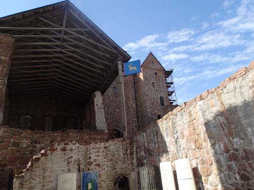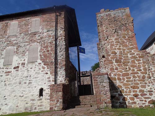 När dagens första logg var avklarad betalade vi inträdet och klev in på historisk mark. Det är omtvistat när slottet egentligen började byggas, några har hävdat att det tillkom redan under 1100-talet men det förefaller inte så troligt. Mer troligt är att byggandet inleddes under 1370- eller 80-talet. Under detta tidiga skede hade den mäktige Bo Jonson Grip kontrollen över slottet innan det efter hans död övergick till unionsdrottning Margareta. Hur borgen såg ut under slutet av 1300-talet är givetvis svårt att fastställa men under de senaste åren har nya detaljer kring slottet kommit fram genom utgrävningar. Här följer nu en serie bilder från besöket med förklarande bildtexter.