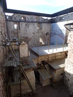 Det är verkligen en utmärkt idé att göra en utgrävning tillgänglig genom att skapa ett nytt rum under borggården på detta sätt.
